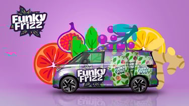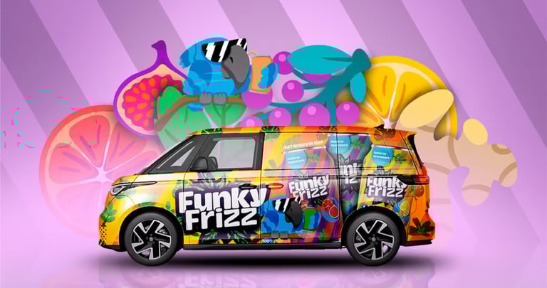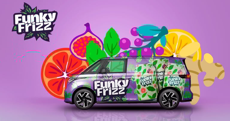 Create a branding for a new soda company called Funky Frizz. You have all creative freedom to make whatever you want. The target audience is teens.